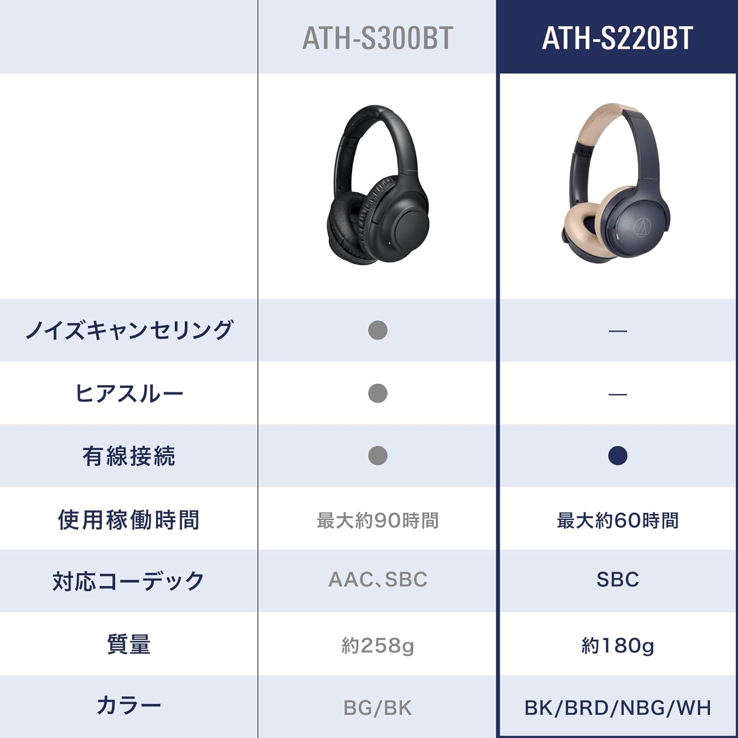 Audio Technica ATH-S220BT BK Wireless Headphones – Lightweight, Long-Lasting, and Designed for Comfort
